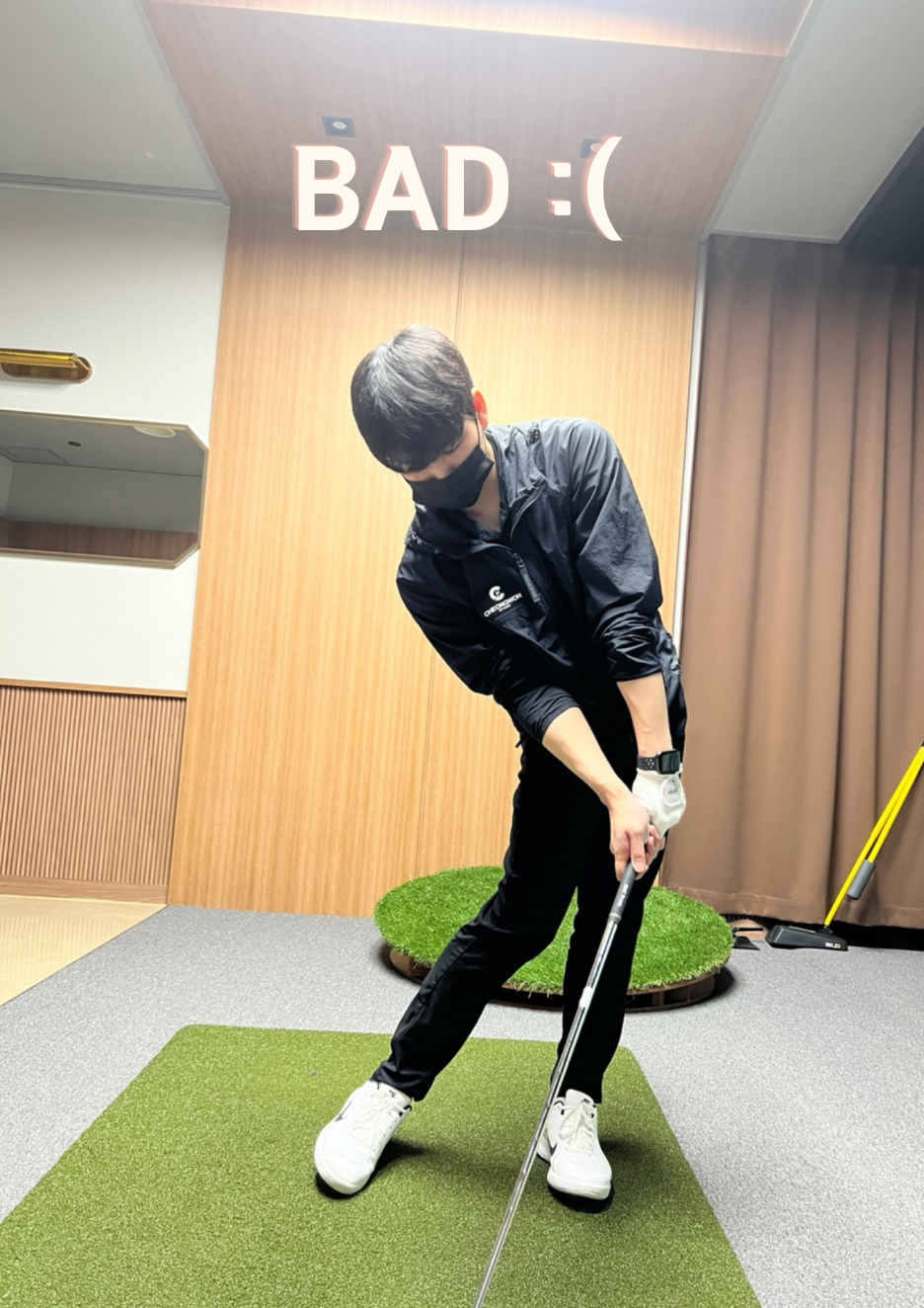임팩트 순간 척추각도의 좋은모습과 나쁜모습입니다.