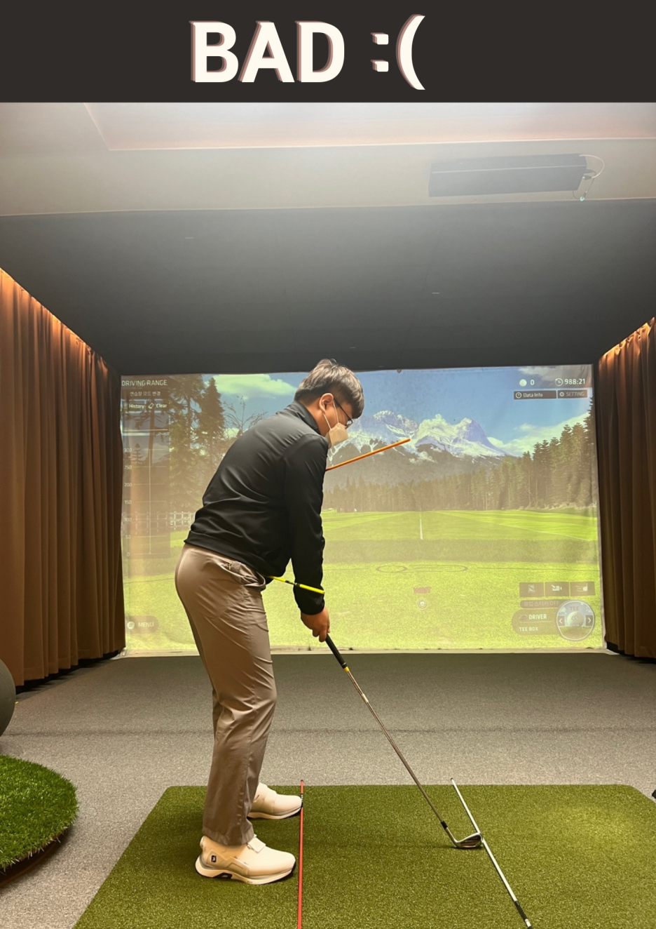 스윙하기 전 준비 자세인 어드레스가 좋게 형성이 되어야 백스윙이 잘못된 궤도로 가는 것을 방지합니다.