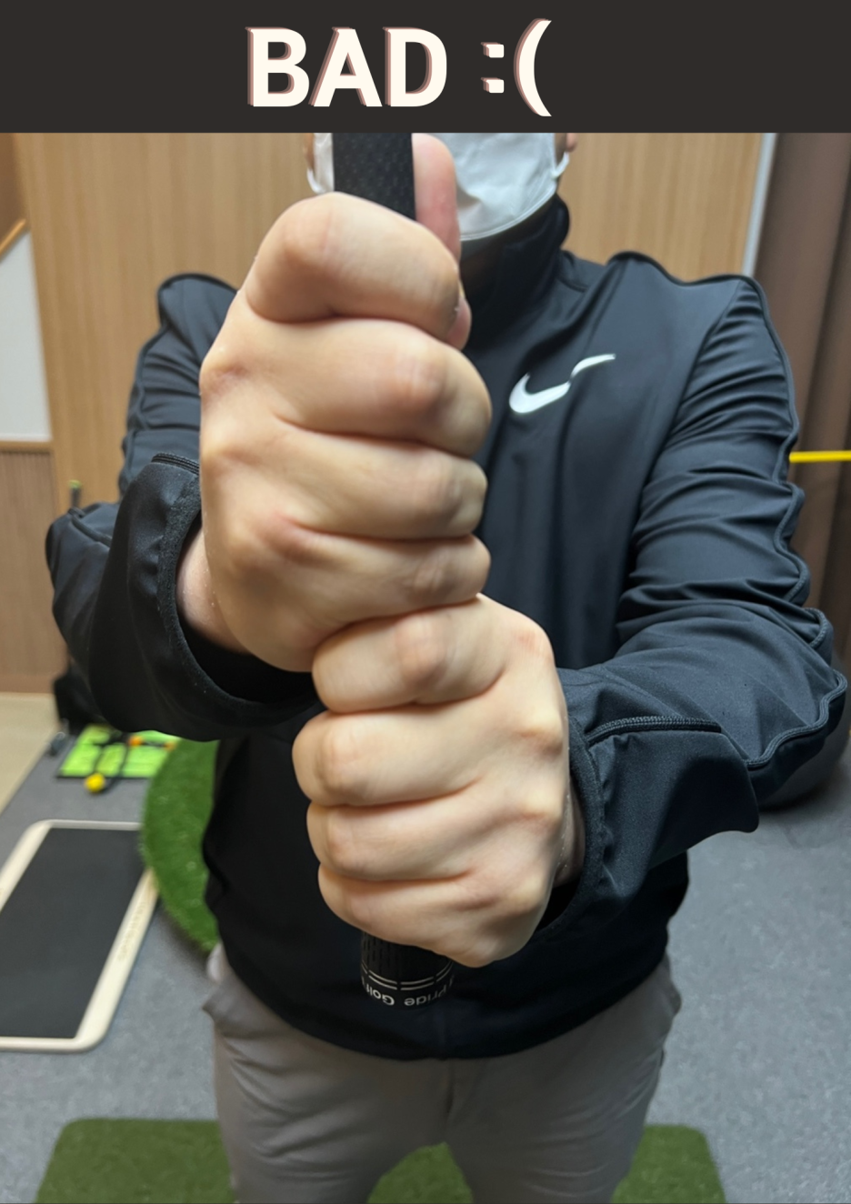주의하실점은 오른손이 앞으로 나오며 검지보다 위쪽으로 잡히는 텐핑거 그립이 되지 않게 잡으셔야 합니다.