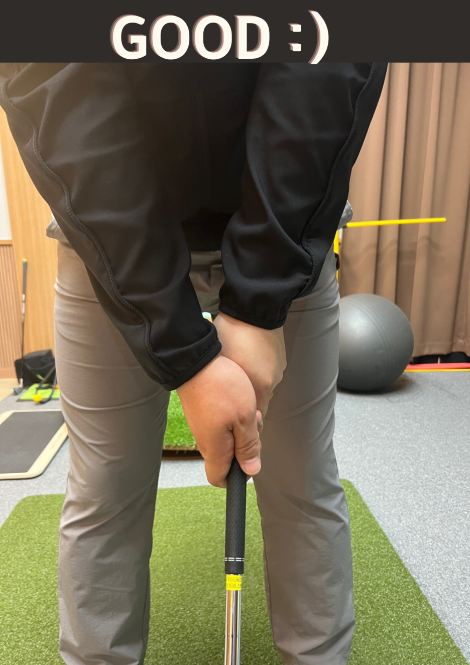 유의하며 자세를 만드시면 올바른 스윙 형성에 도움이 됩니다.