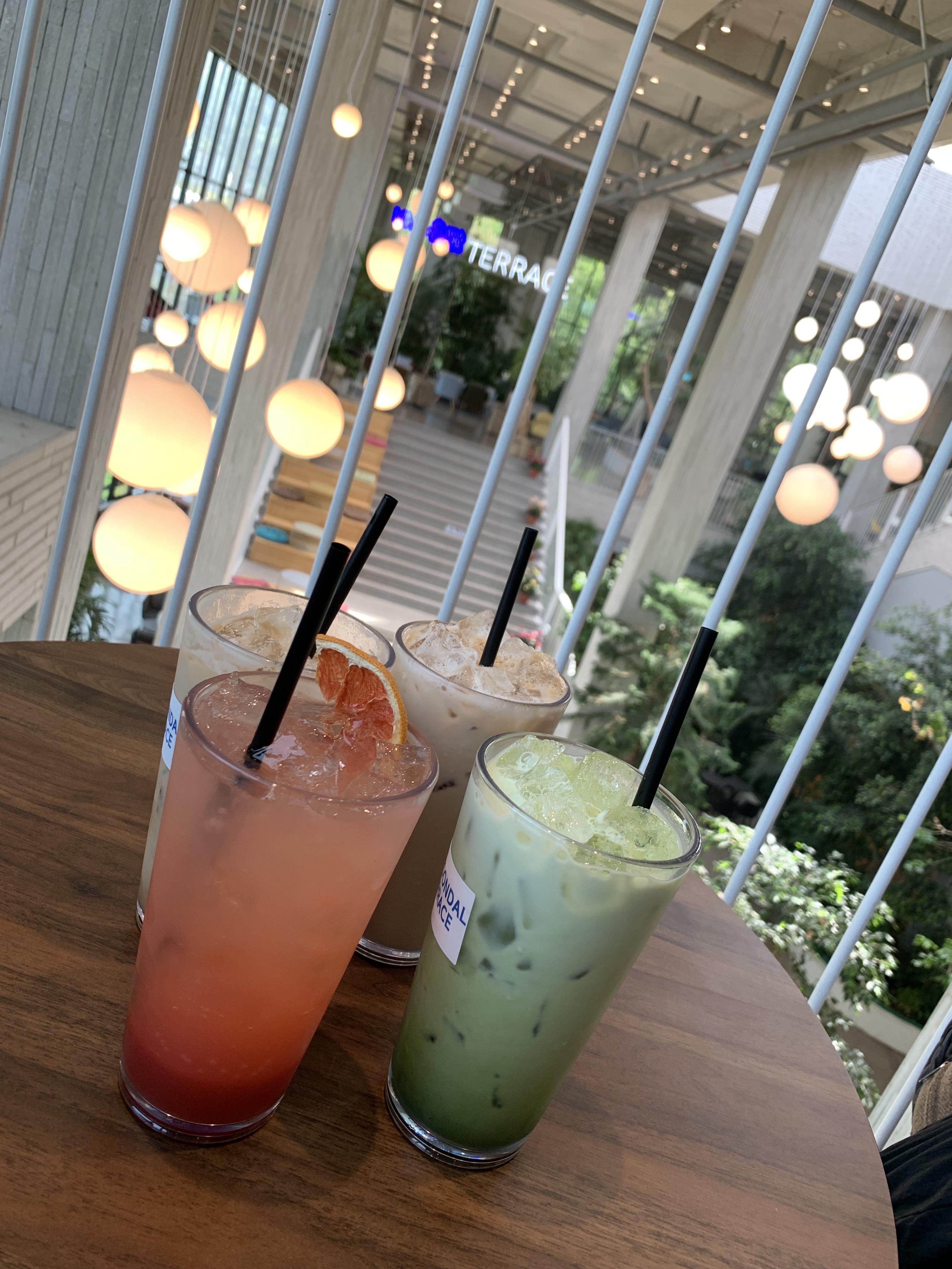 바닐라빈 라떼, 말차라떼, 자몽에이드, 블랙밀크티를 주문했어요