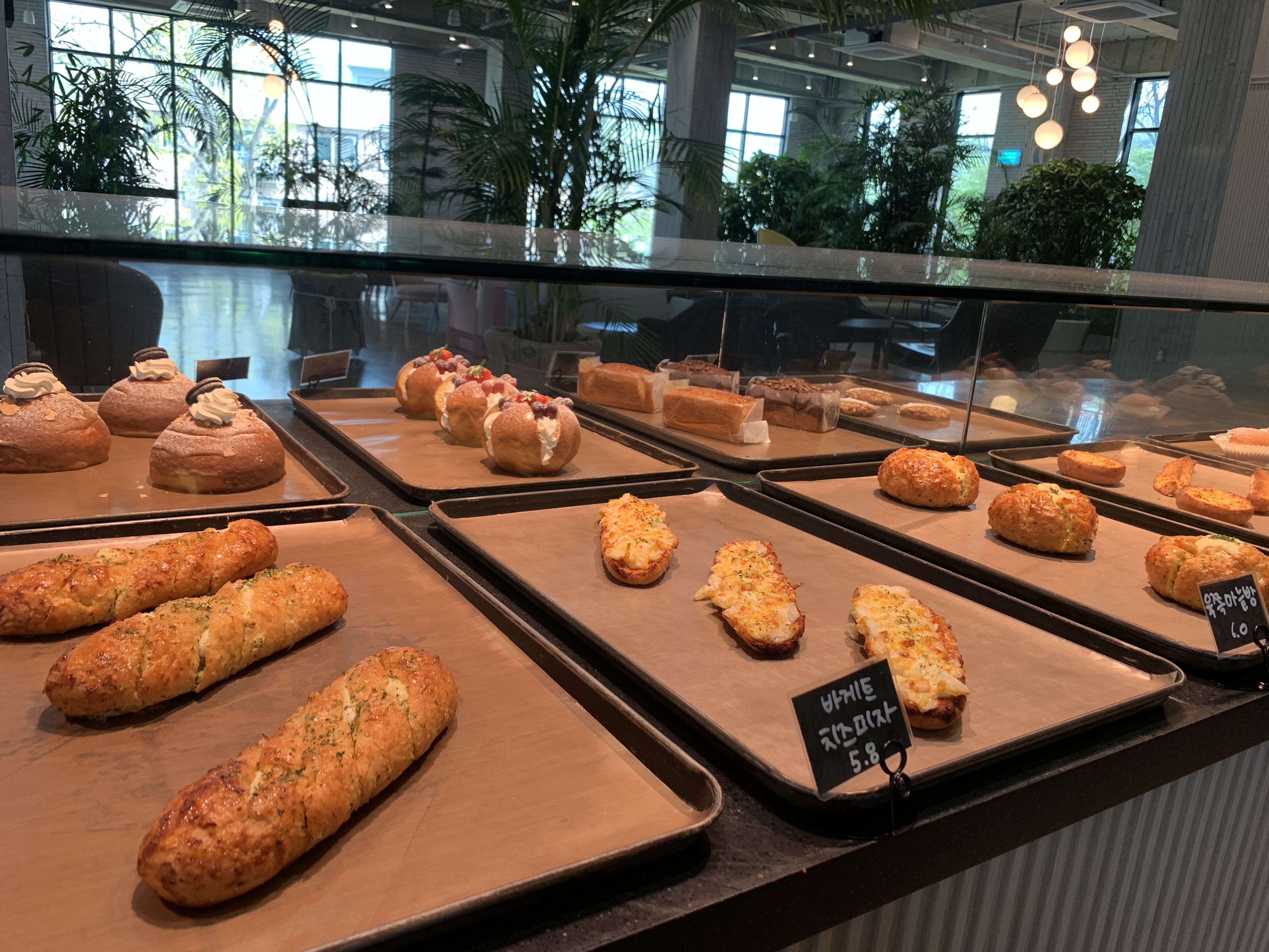 오픈런을 해서 막 빵이 구워져 나오고 있었습니다.
