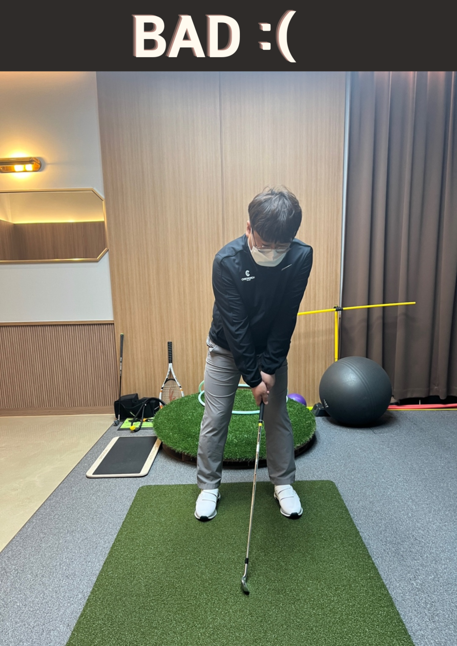 항상 왼쪽 방향을 향해 공을 보내다 보니 몸의 축이 비뚤어지기 좋습니다.