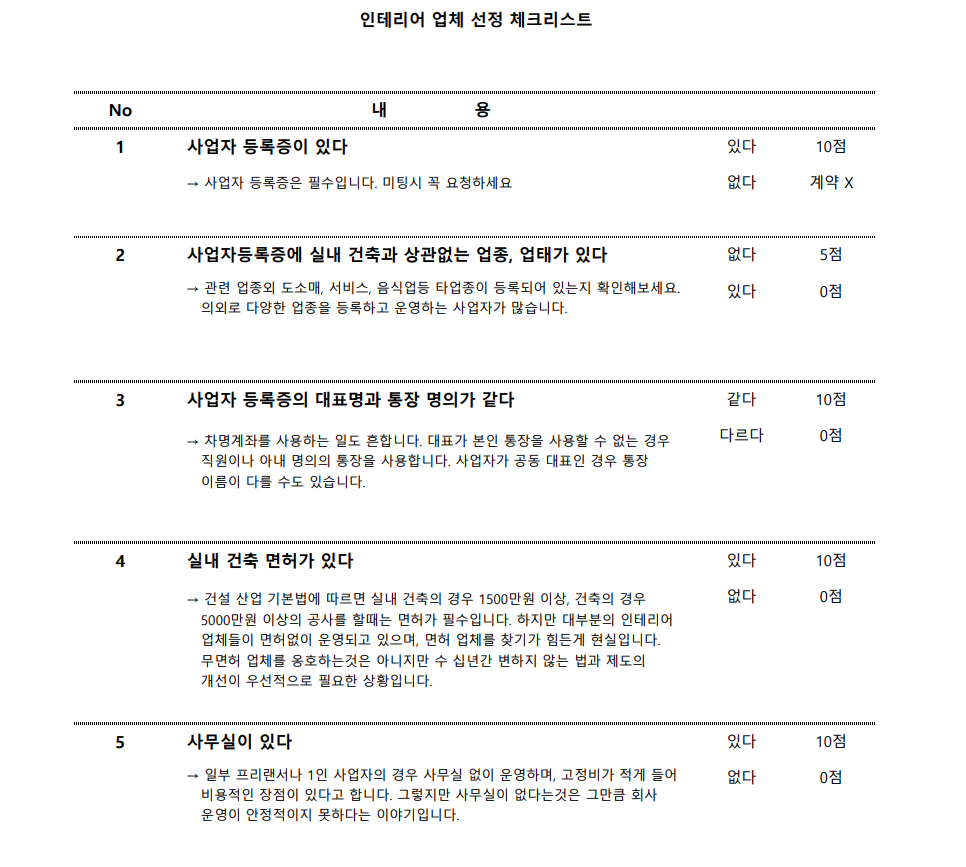 인테리어 사기안당하기, 업체 선정 체크 리스트