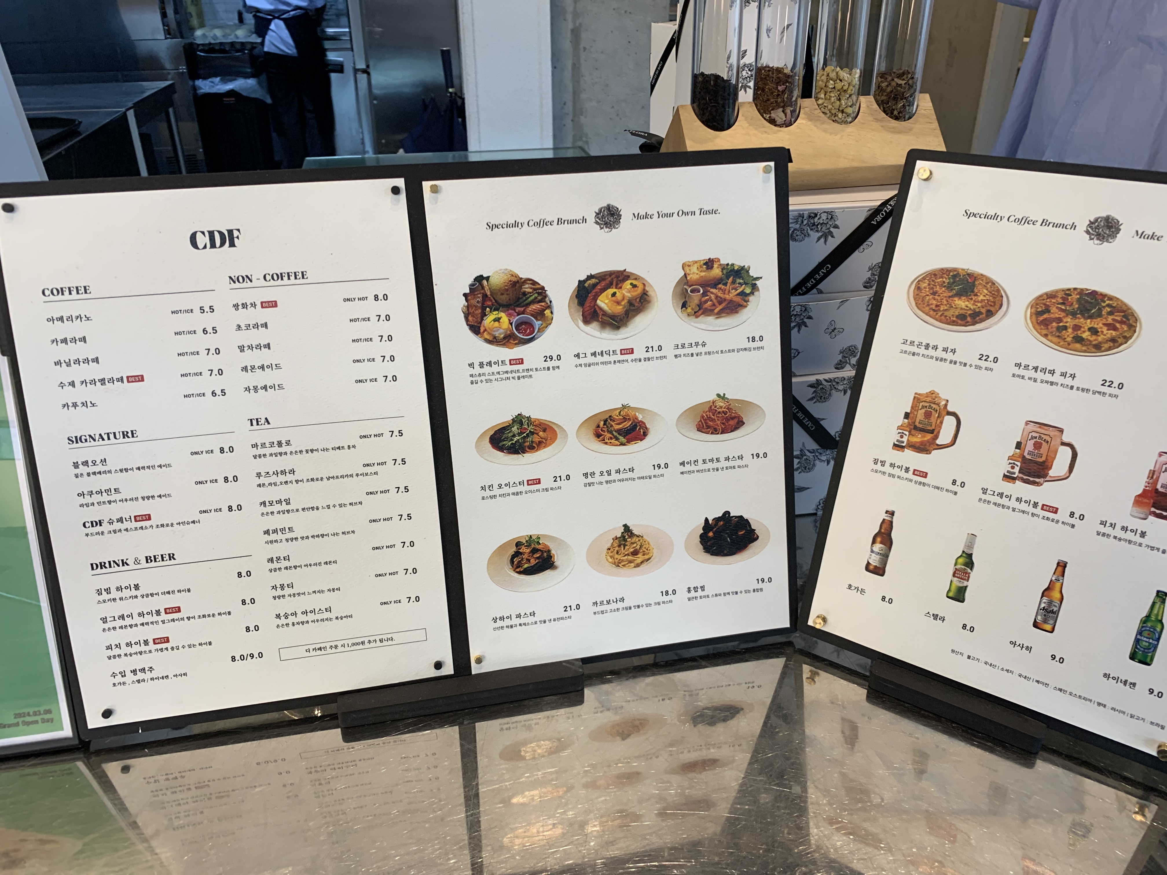 음료는 얼그레이 하이볼(8,000) 아메리카노(5,500) 아쿠아민트(8,000) CDF슈페너(8,000원)